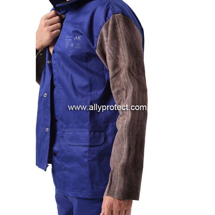 AP-2530 藍(lán)色阻燃布配炭啡色皮袖焊服