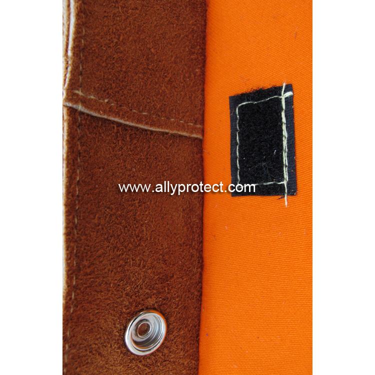 • 產(chǎn)品描述: [ AP ]前幅和衣袖采用咖啡色牛二層皮,后幅采用橙紅色防護(hù)阻燃布,專為焊工在炎熱環(huán)境下工作而設(shè)計(jì)。