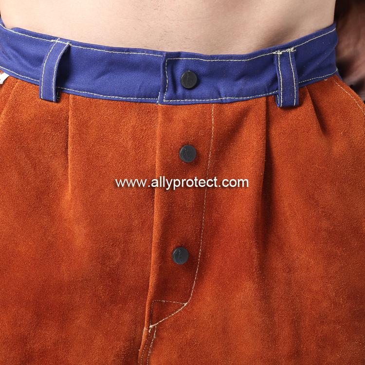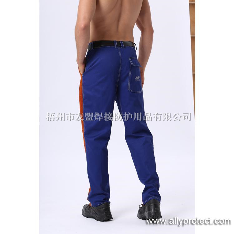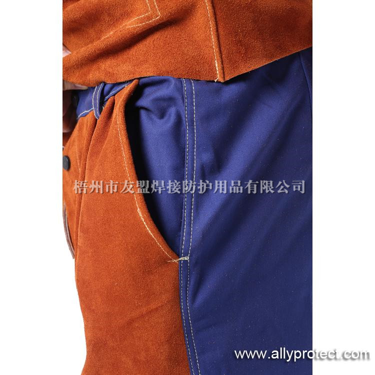 AP-6062 咖啡色皮配藍(lán)色阻燃布焊褲